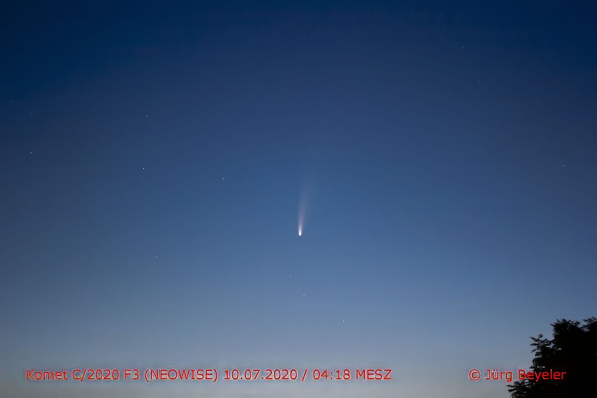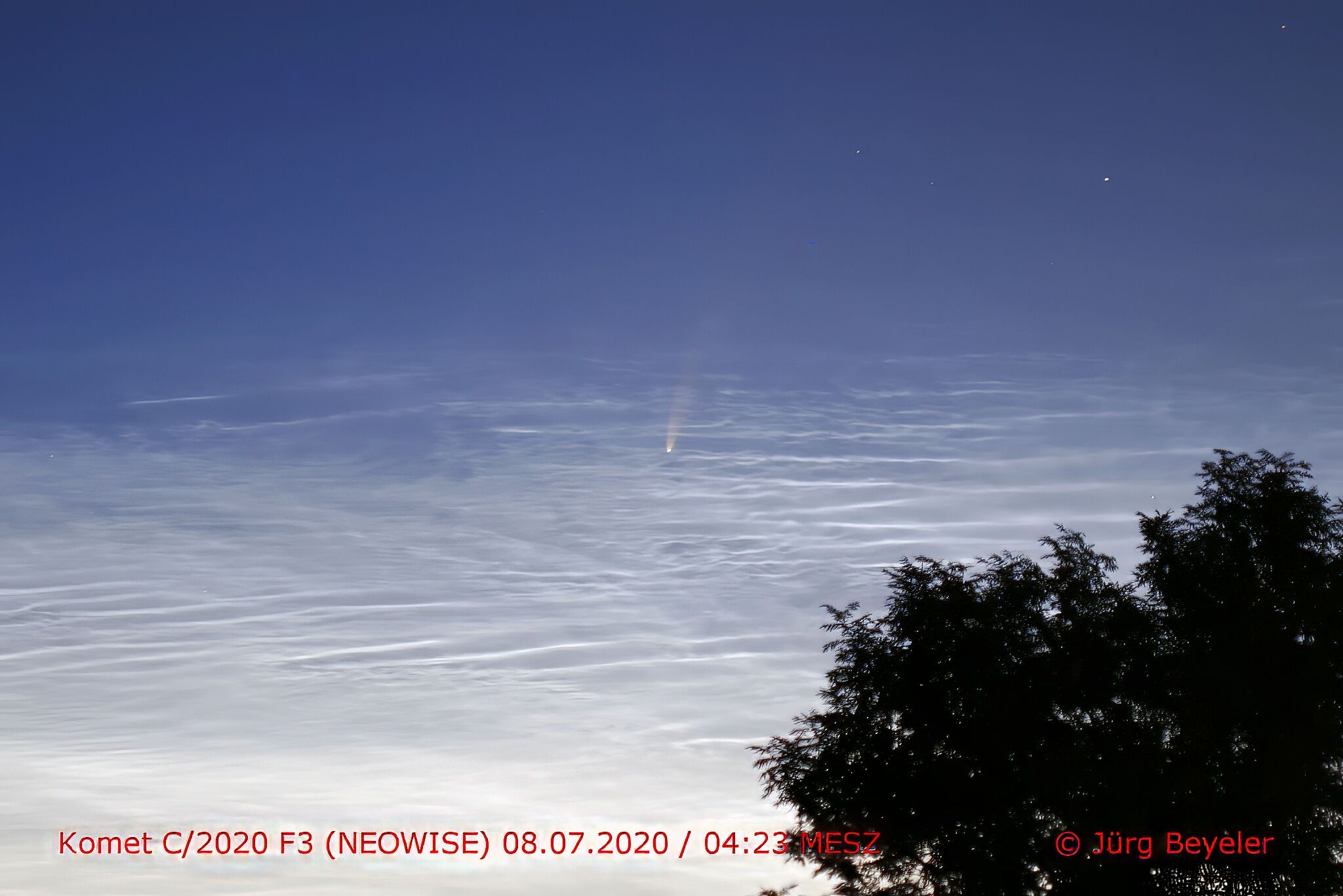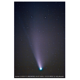 Foto-Galerie des Kometen NEOWISE in der Zeit vom 8. Juli 2020 bis 24. Juli 2020.