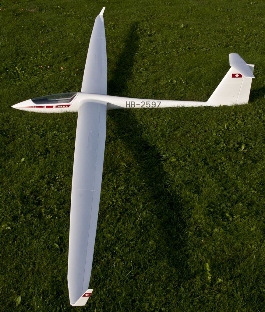 Diese ASW22-BL ist ein Voll-GFK Semi-Scale-Modellsegelflugzeug (Massstab 1:5) von Jiří Baudis Modelbau (CZ) mit einer Spannweite von 5,30m und einem Fluggewicht von ca. 5.0 kg.