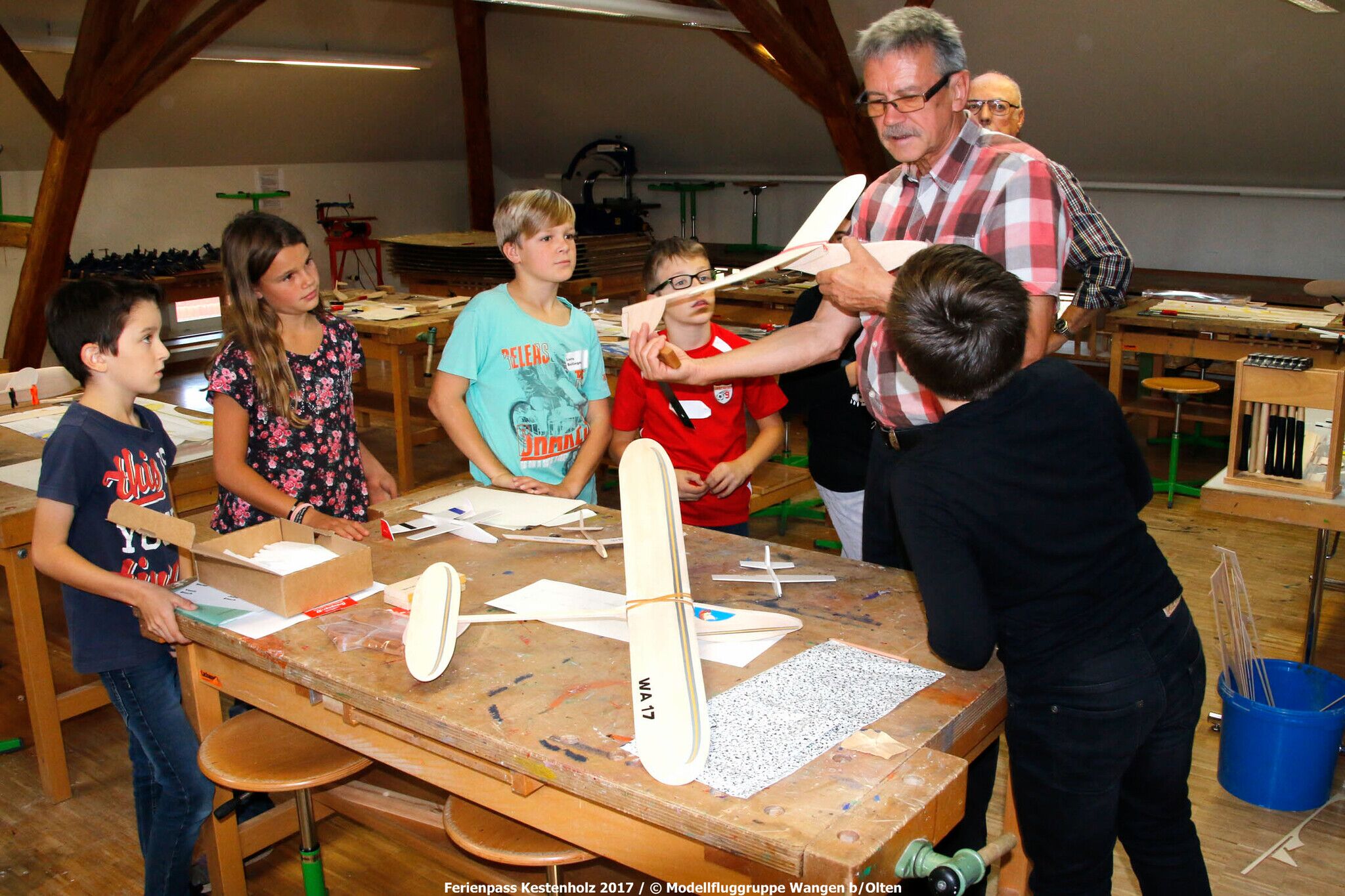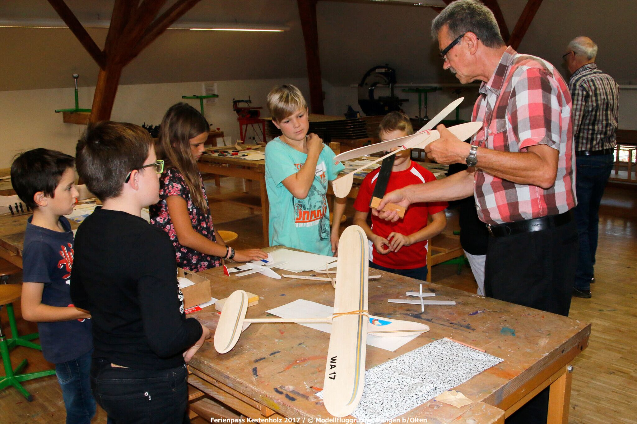 Anlässlich des Ferienpasses Kestenholz Mitte Oktober 2017 konnten wir 5 Schüler und eine Schülerin zum Kurs "Ein Flugzeug bauen und fliegen" begrüssen!