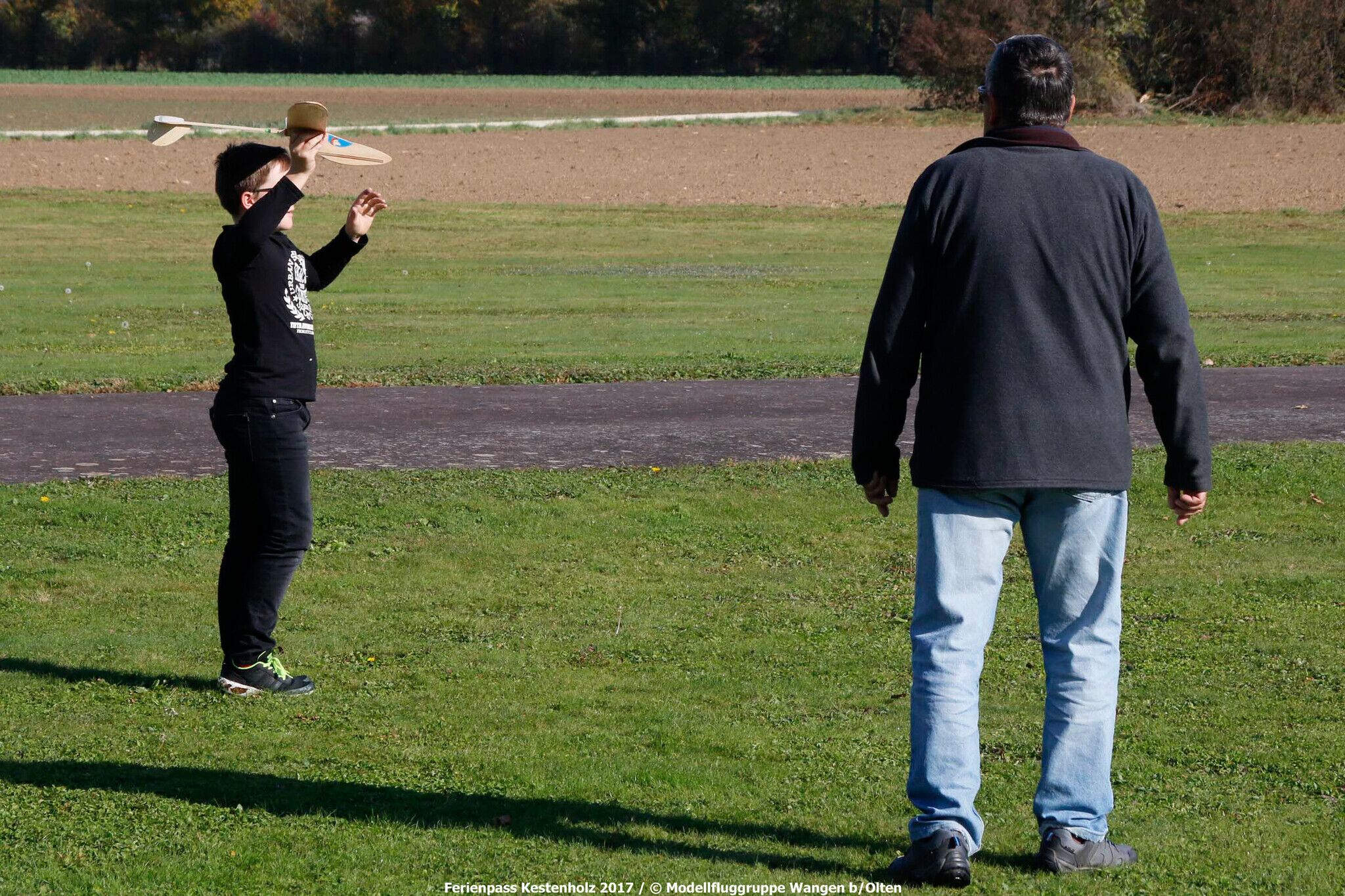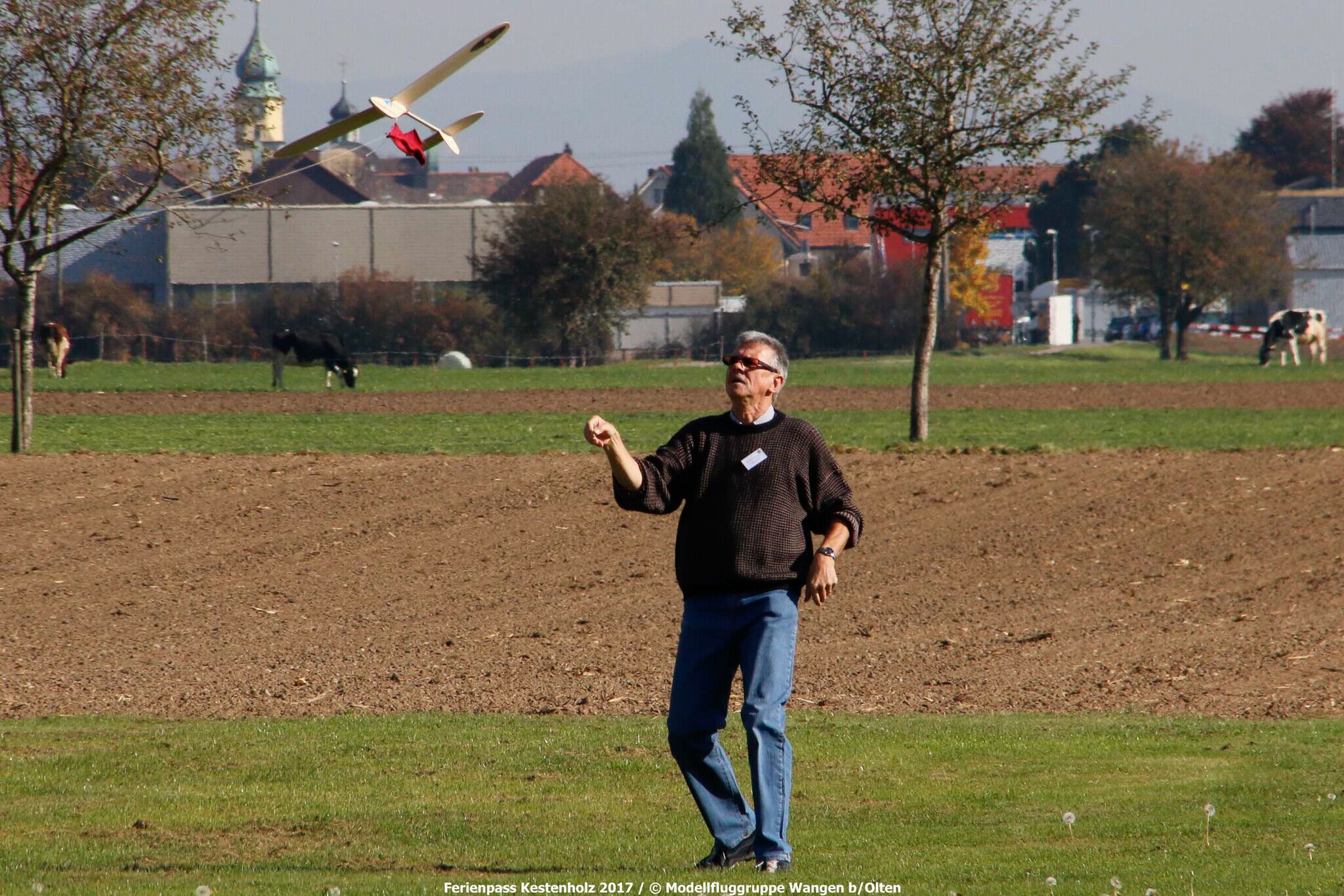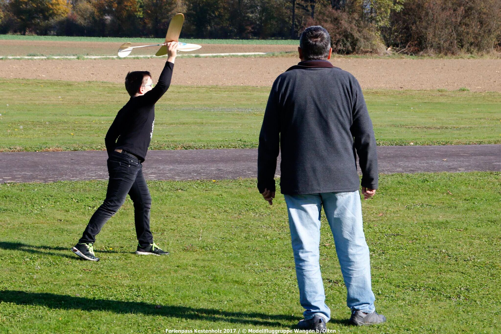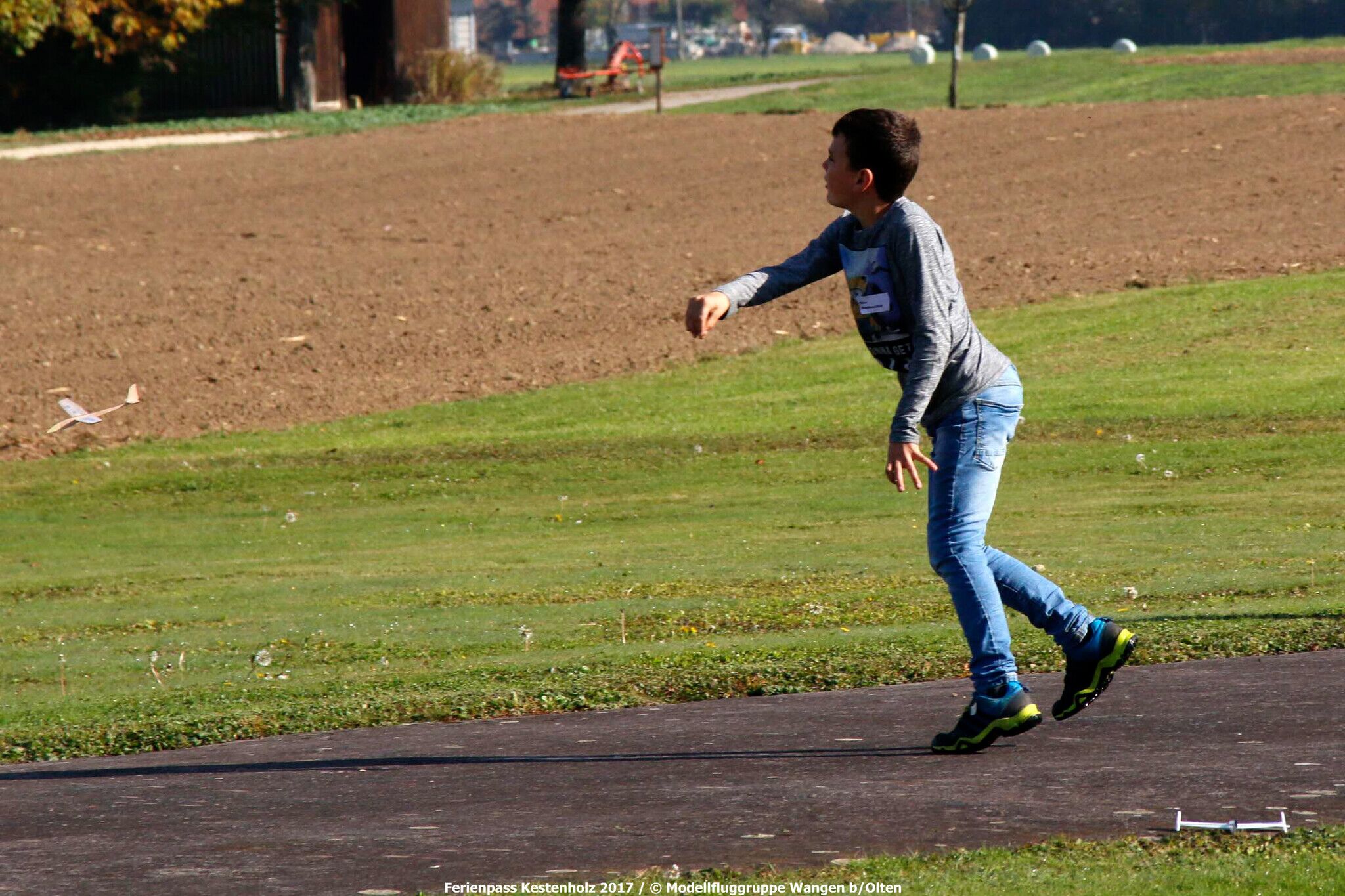 Dienstags, den 17.10. dislozierten wir zum Modellflugplatz der MG Wangen, um die Segelflieger einzufliegen und schliesslich mittels Hochstart einen längeren Gleitflug zu gewähren.