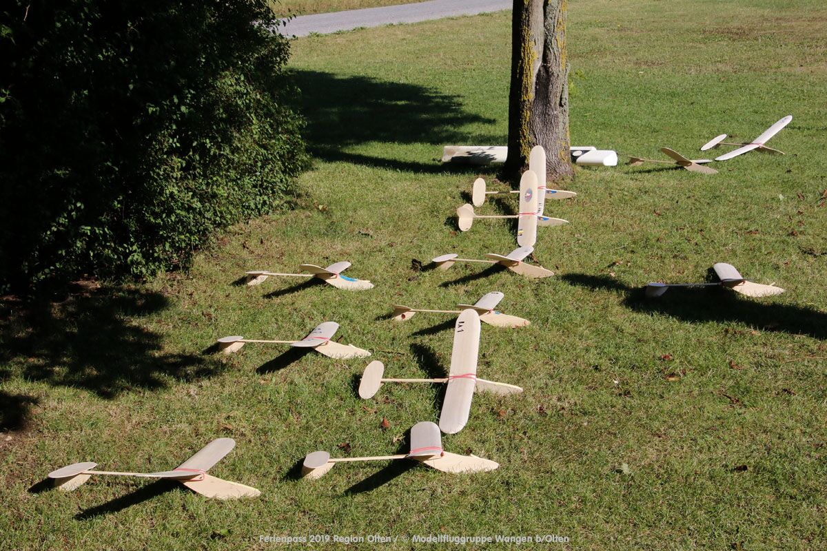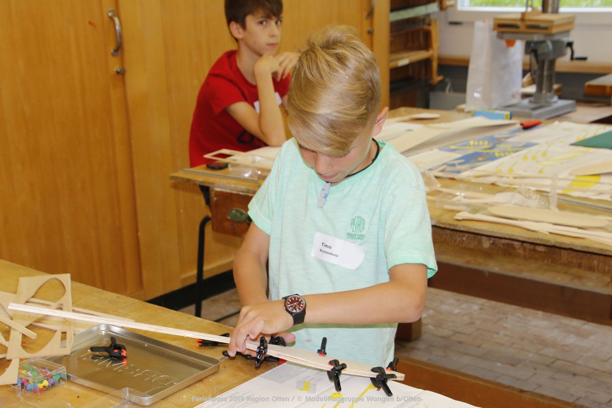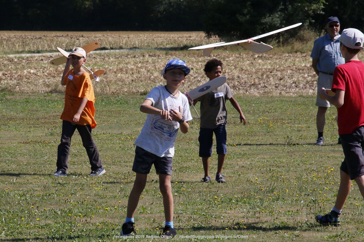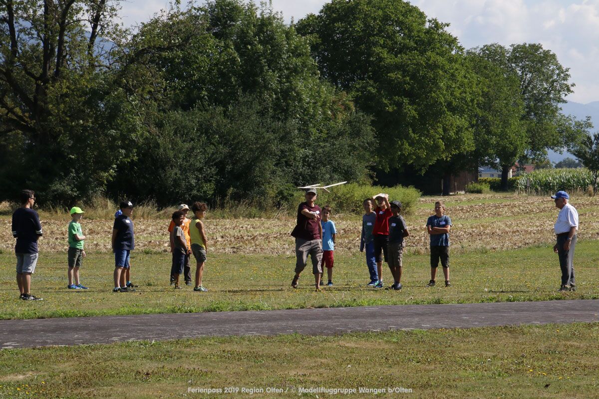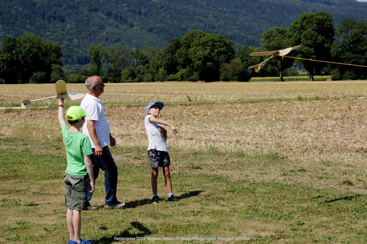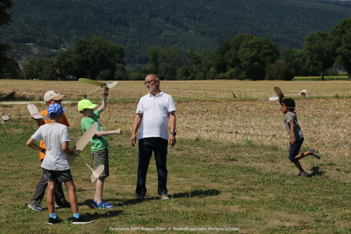 Anlässlich des Ferienpasses der Region Olten Ende Juli 2019, konnten wir 12 Schüler beim Kurs "Ein Flugzeug bauen und fliegen" im Hinterbüel Schulhaus in Wangen bei Olten begrüssen!
