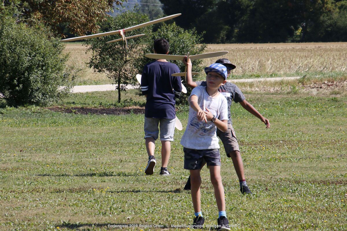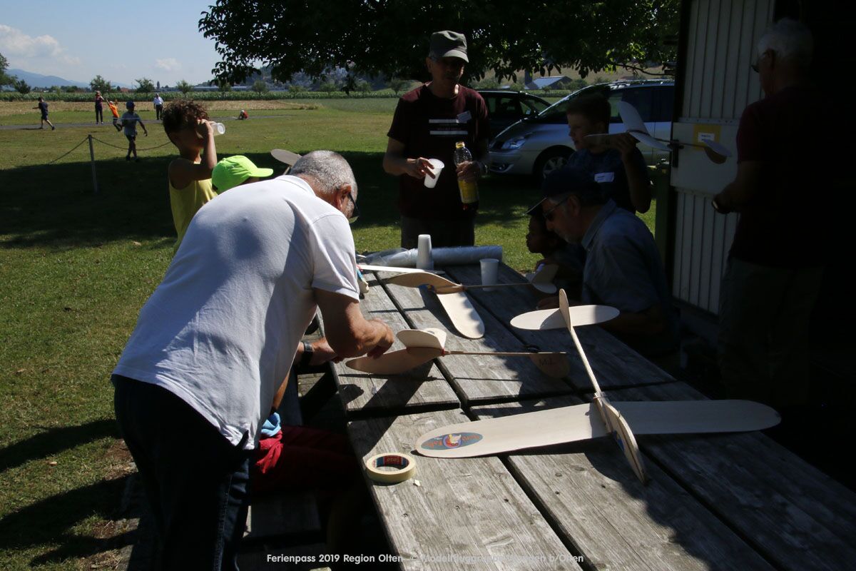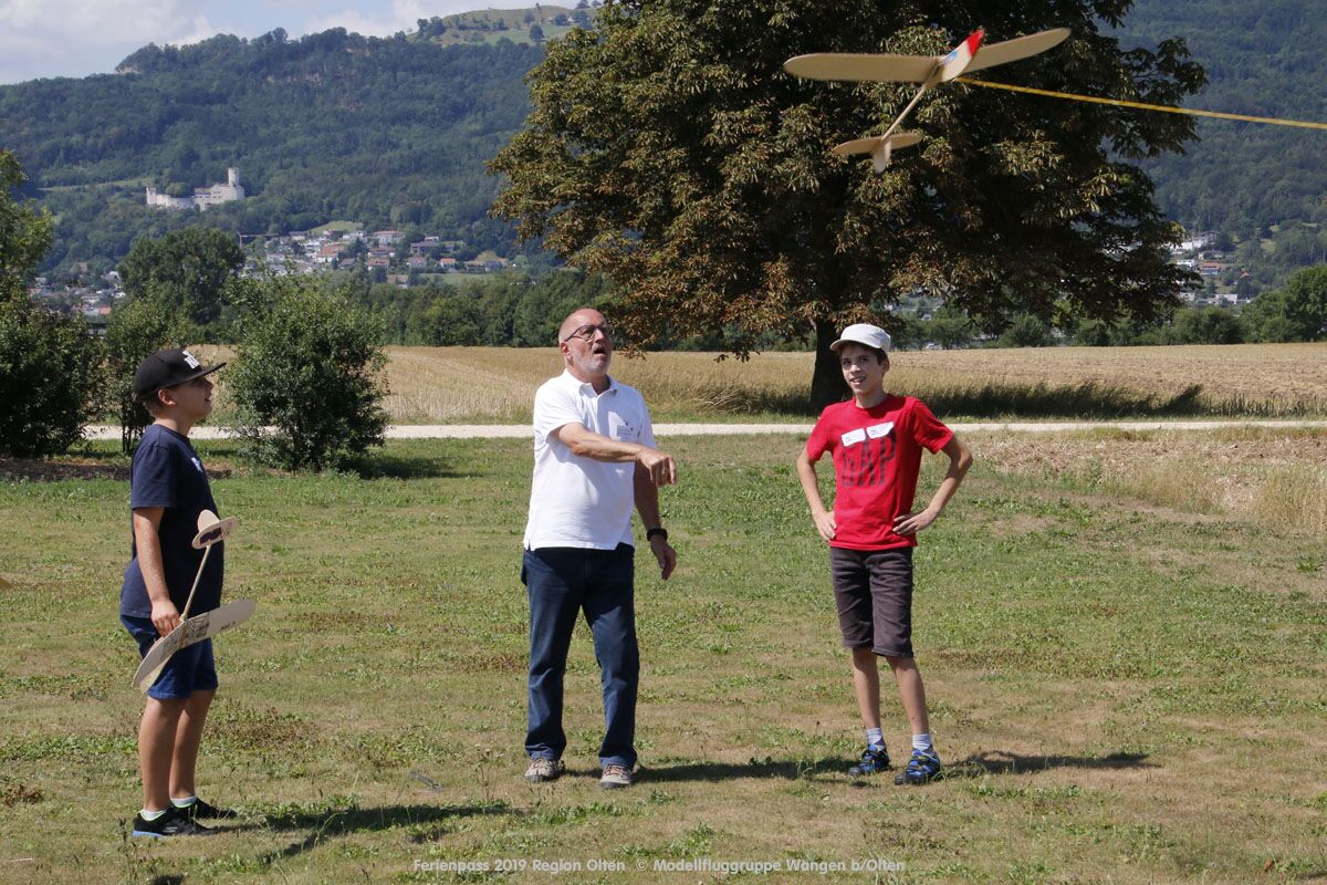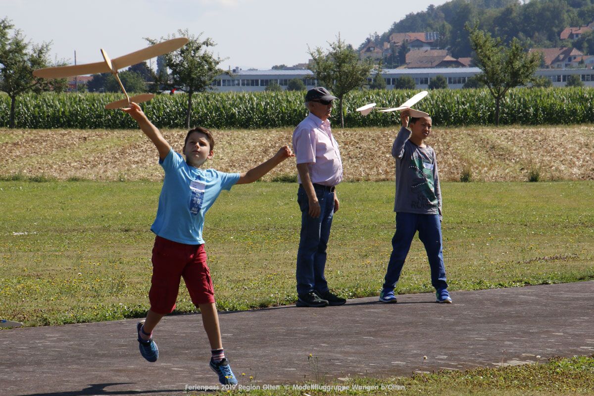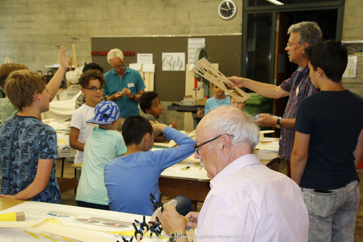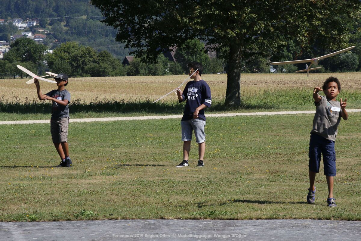 Anlässlich des Ferienpasses der Region Olten Ende Juli 2019, konnten wir 12 Schüler beim Kurs "Ein Flugzeug bauen und fliegen" im Hinterbüel Schulhaus in Wangen bei Olten begrüssen!