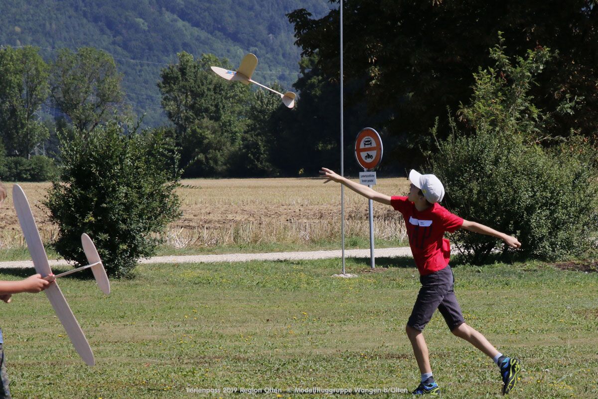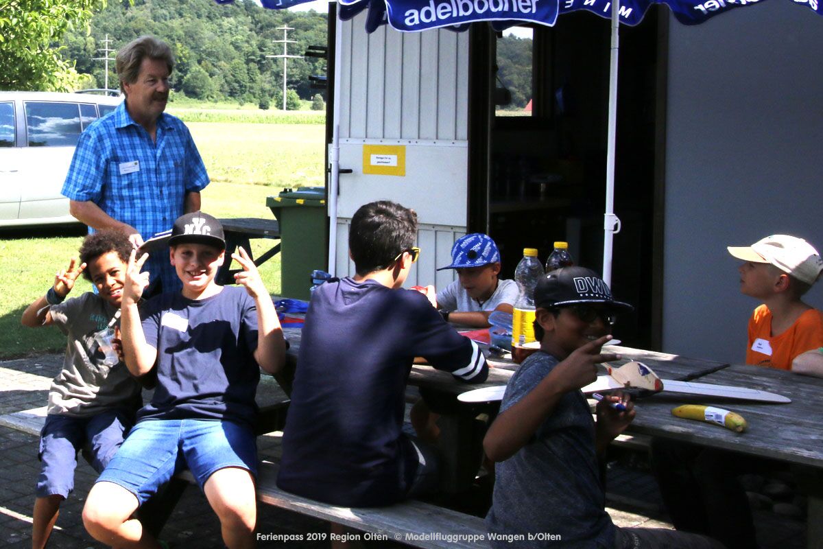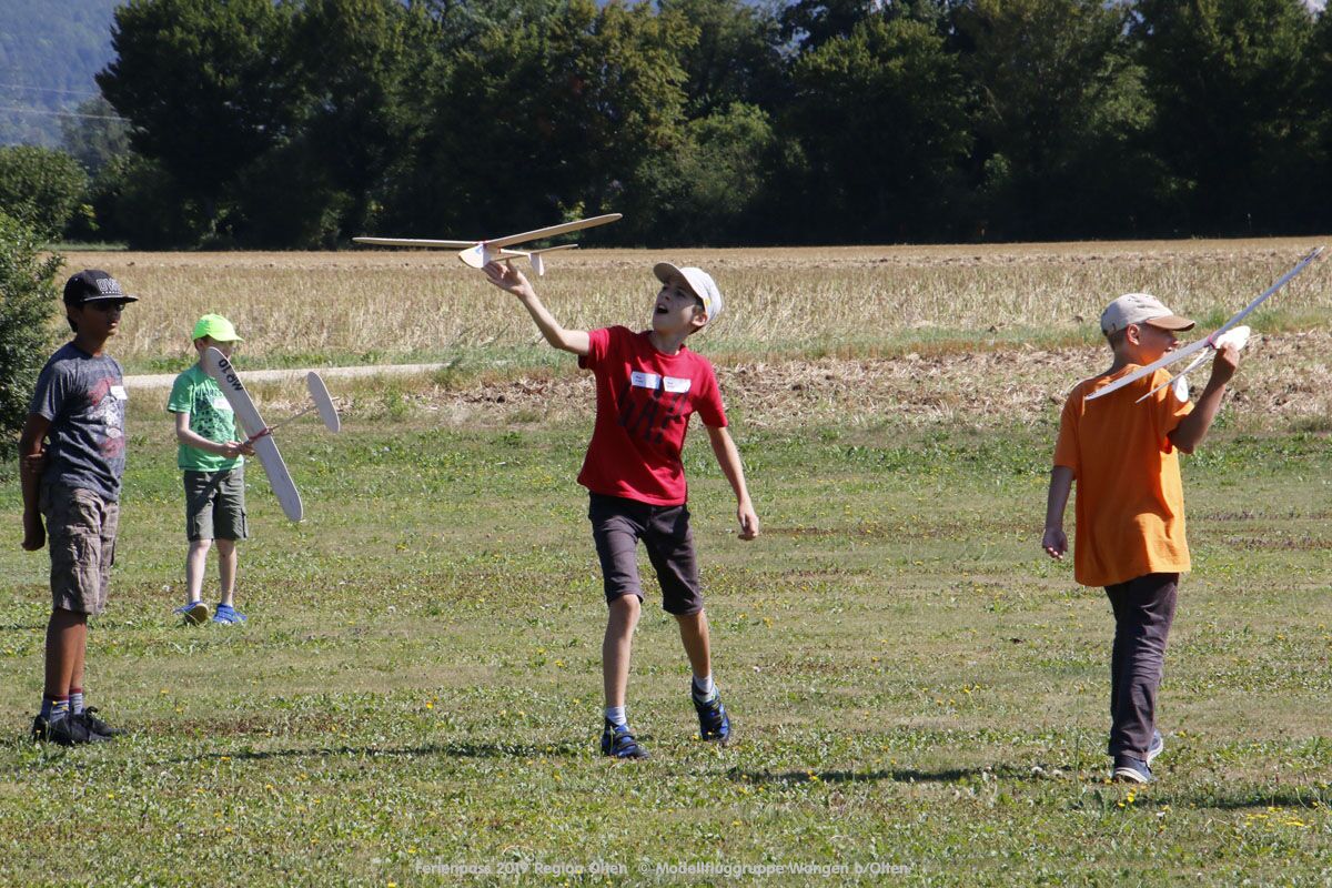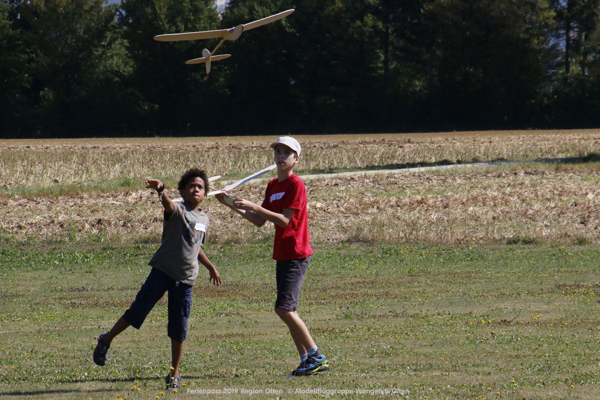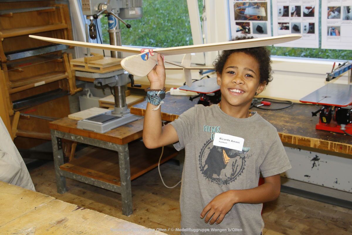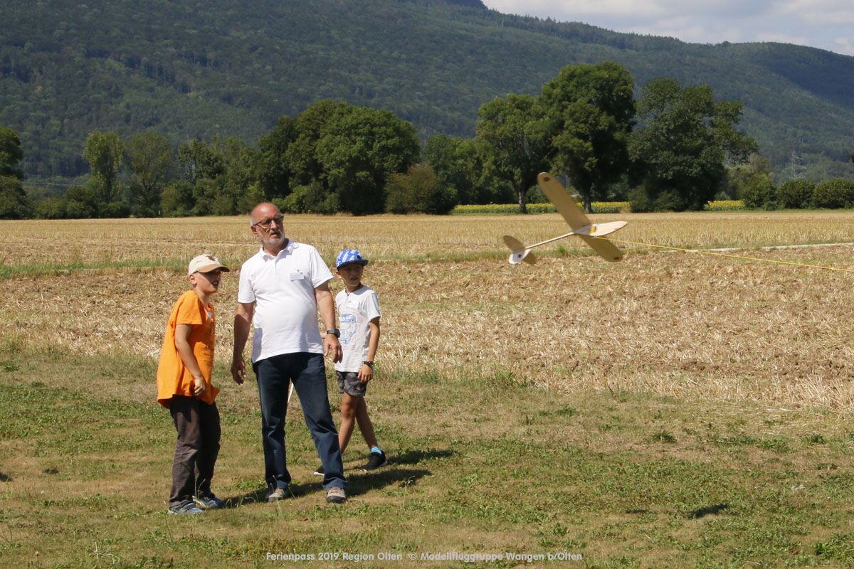 Anlässlich des Ferienpasses der Region Olten Ende Juli 2019, konnten wir 12 Schüler beim Kurs "Ein Flugzeug bauen und fliegen" im Hinterbüel Schulhaus in Wangen bei Olten begrüssen!