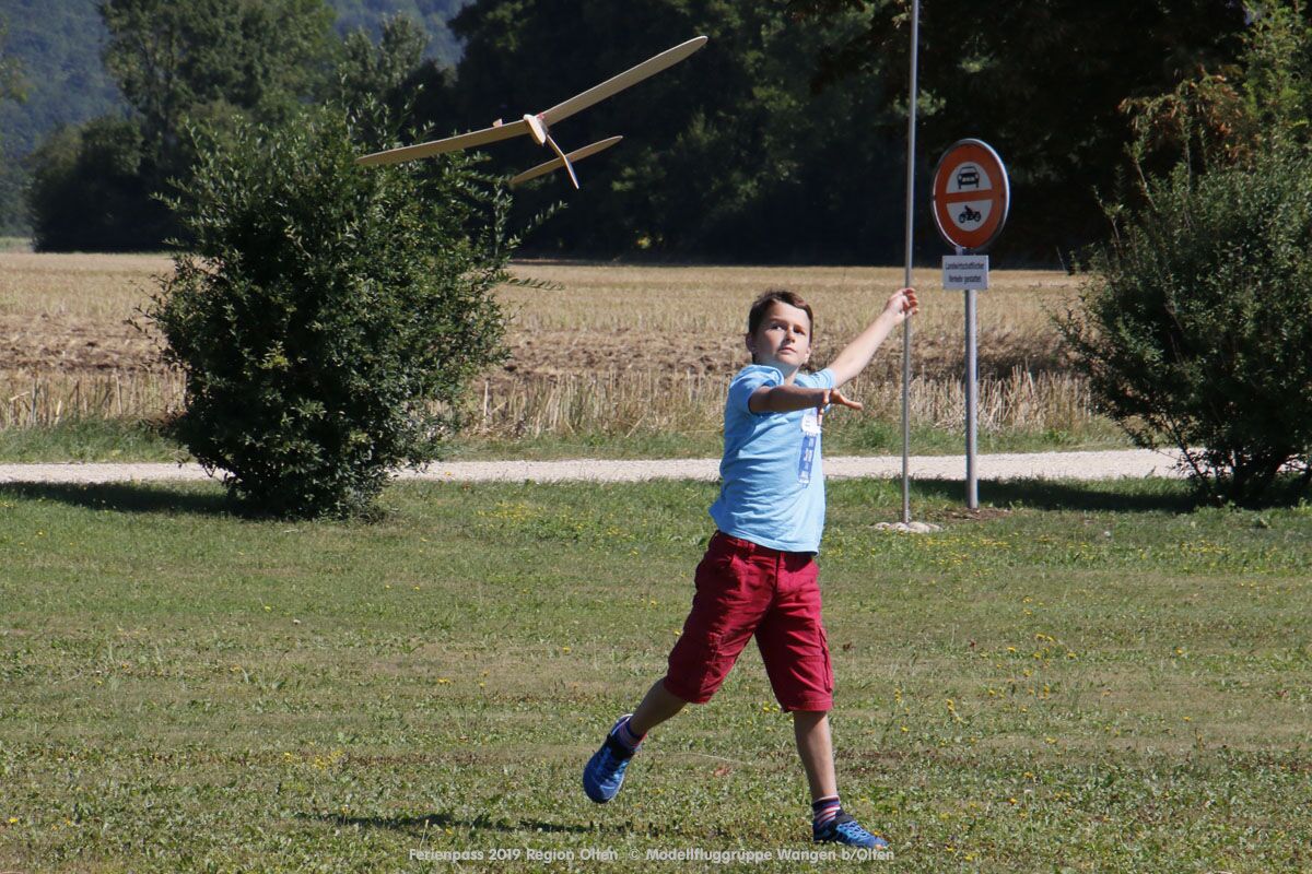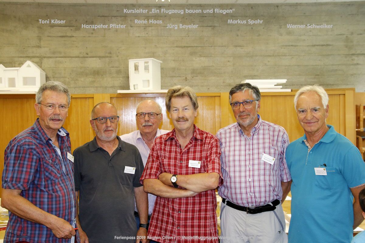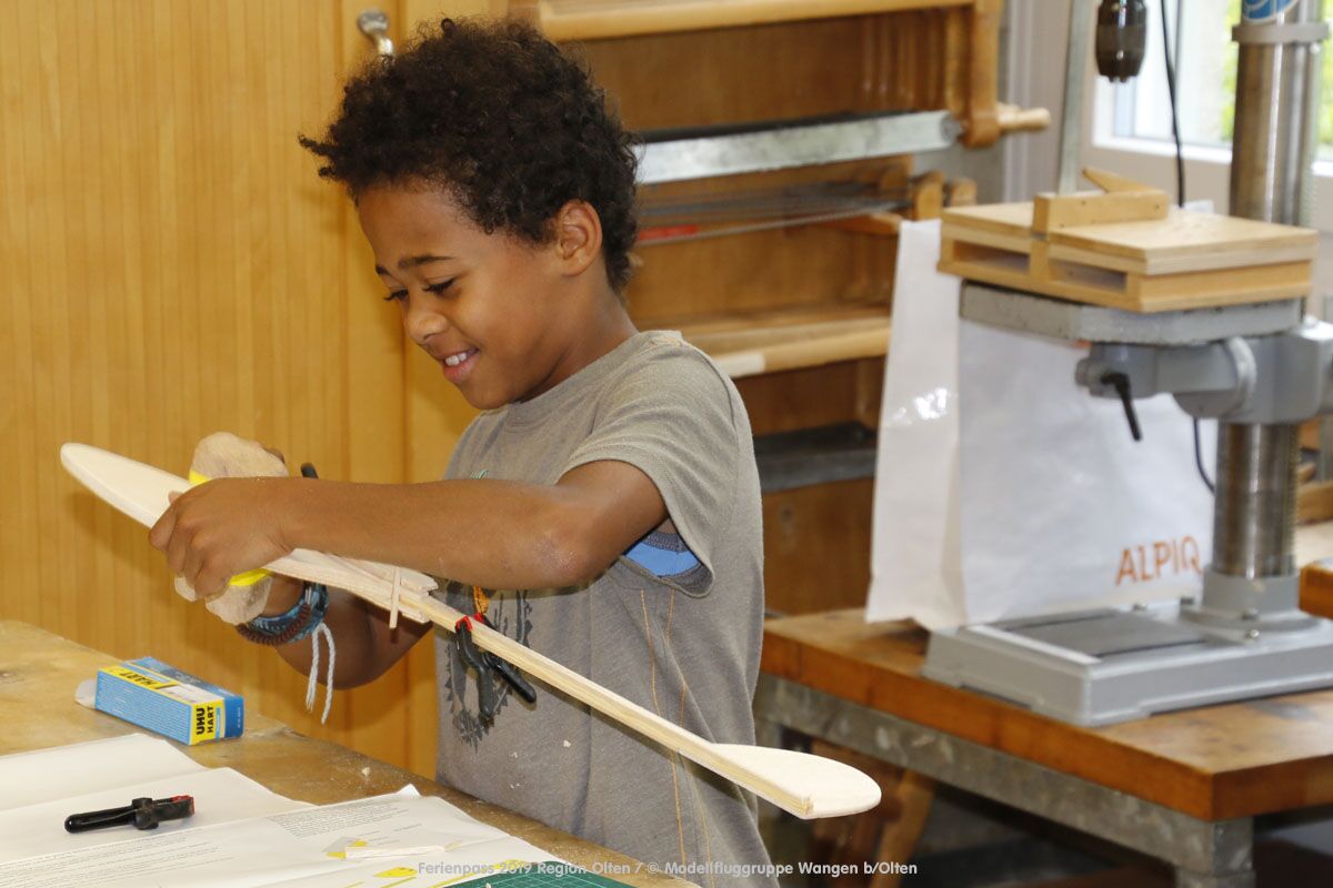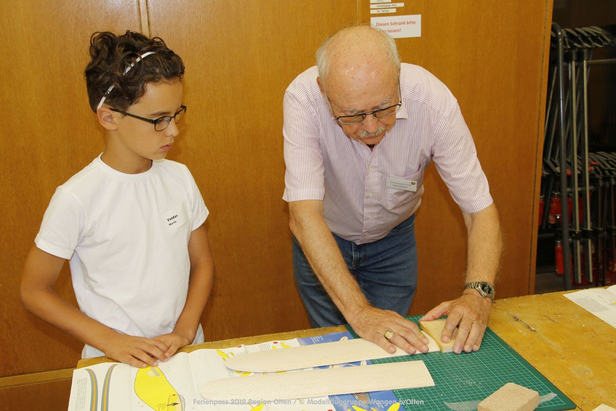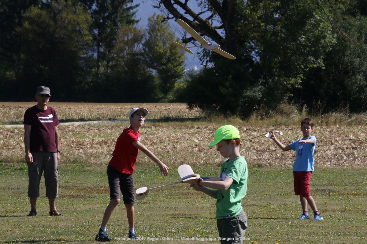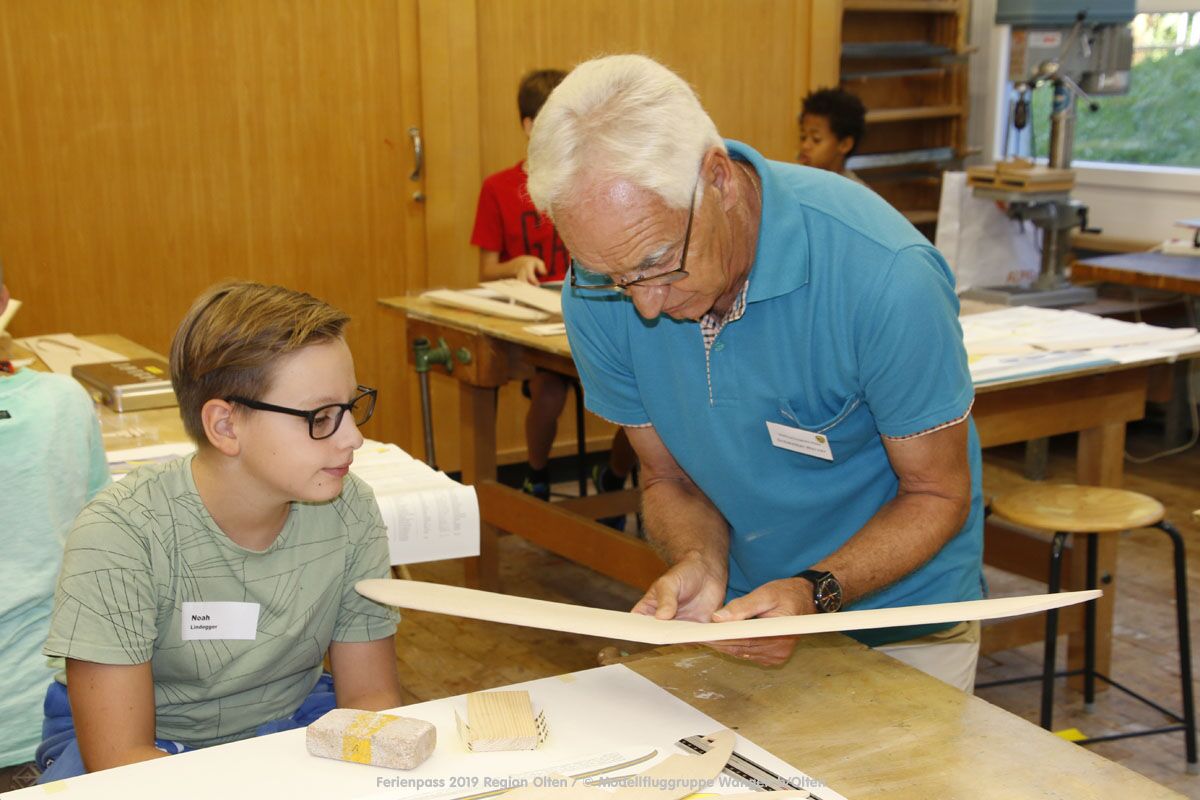 Anlässlich des Ferienpasses der Region Olten Ende Juli 2019, konnten wir 12 Schüler beim Kurs "Ein Flugzeug bauen und fliegen" im Hinterbüel Schulhaus in Wangen bei Olten begrüssen!
