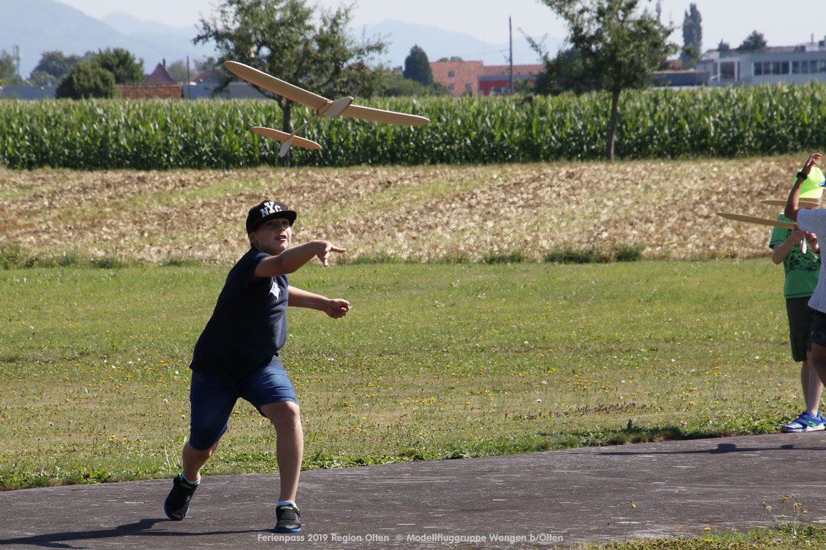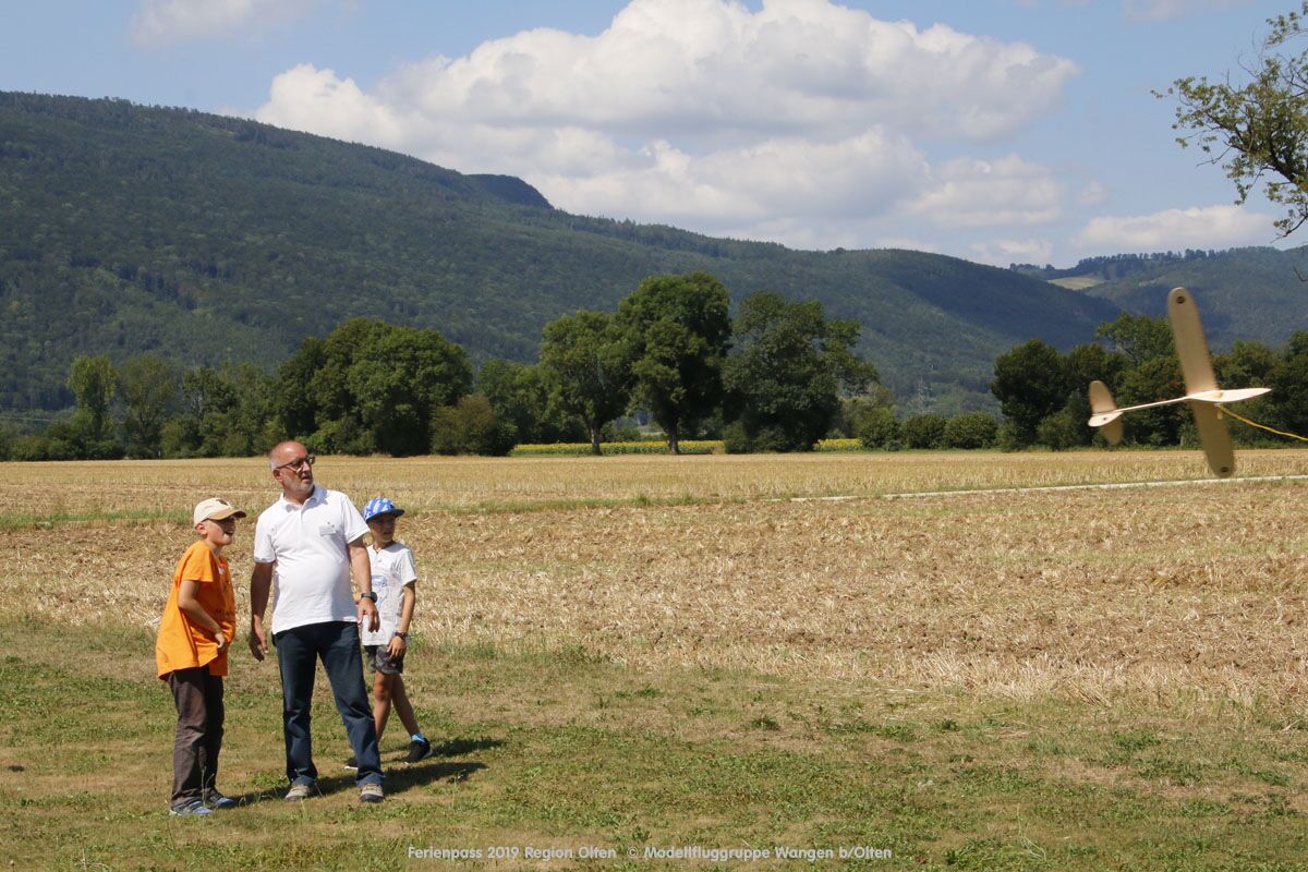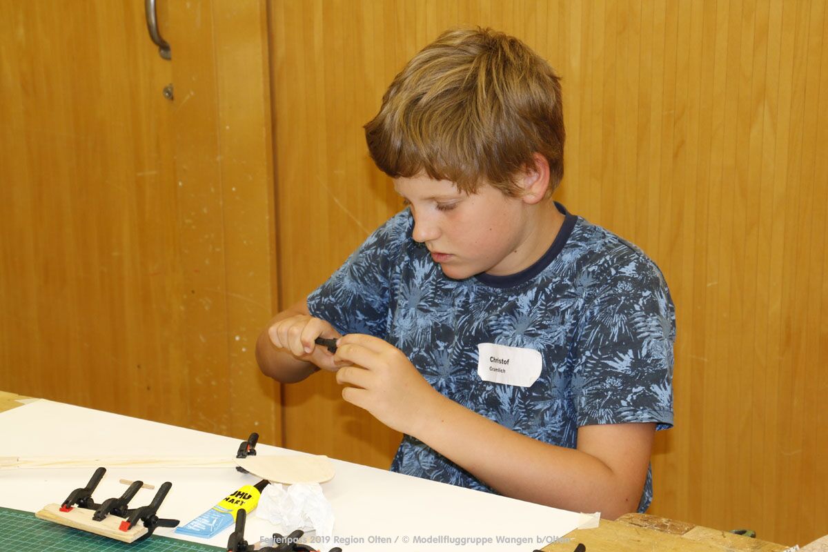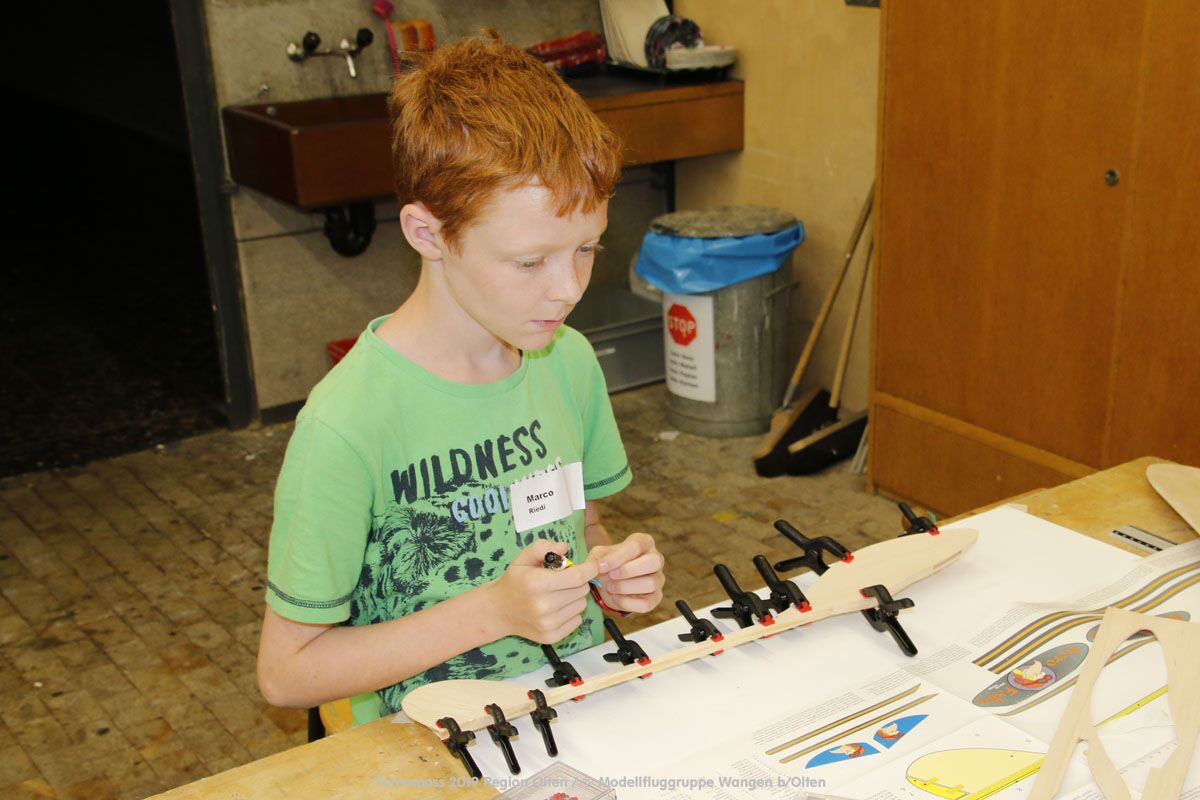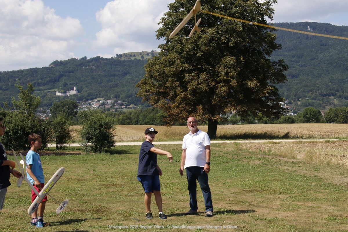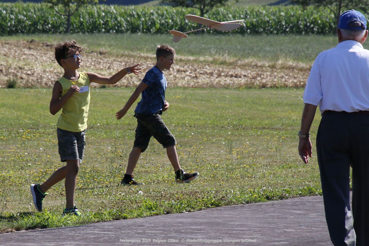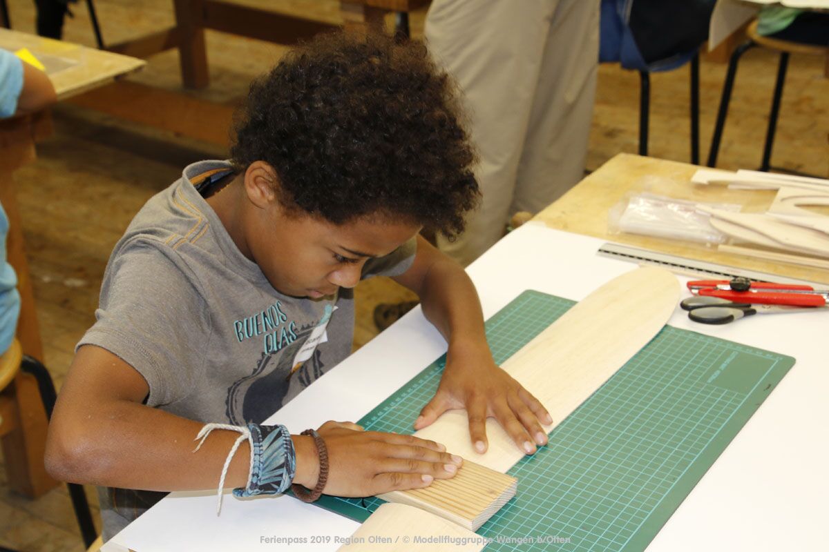 Anlässlich des Ferienpasses der Region Olten Ende Juli 2019, konnten wir 12 Schüler beim Kurs "Ein Flugzeug bauen und fliegen" im Hinterbüel Schulhaus in Wangen bei Olten begrüssen!