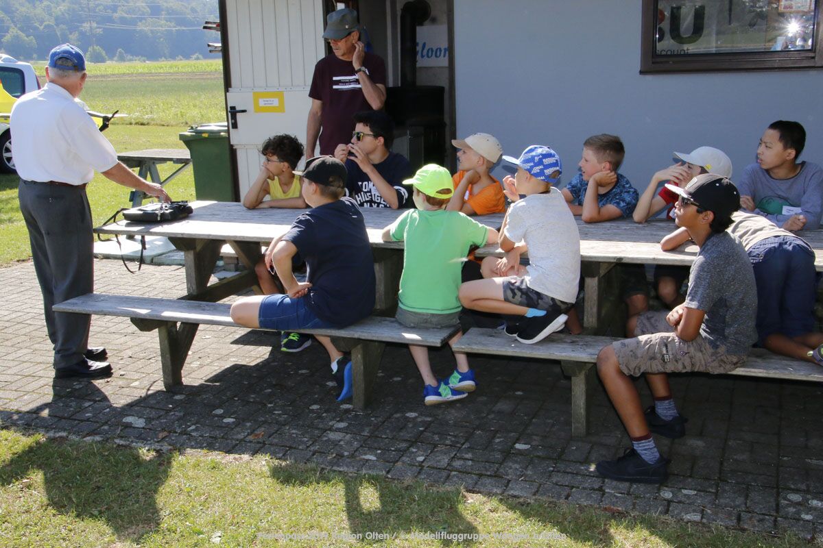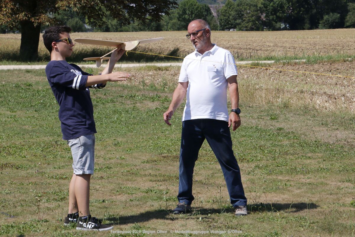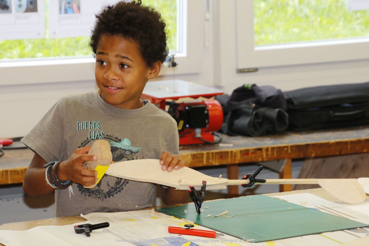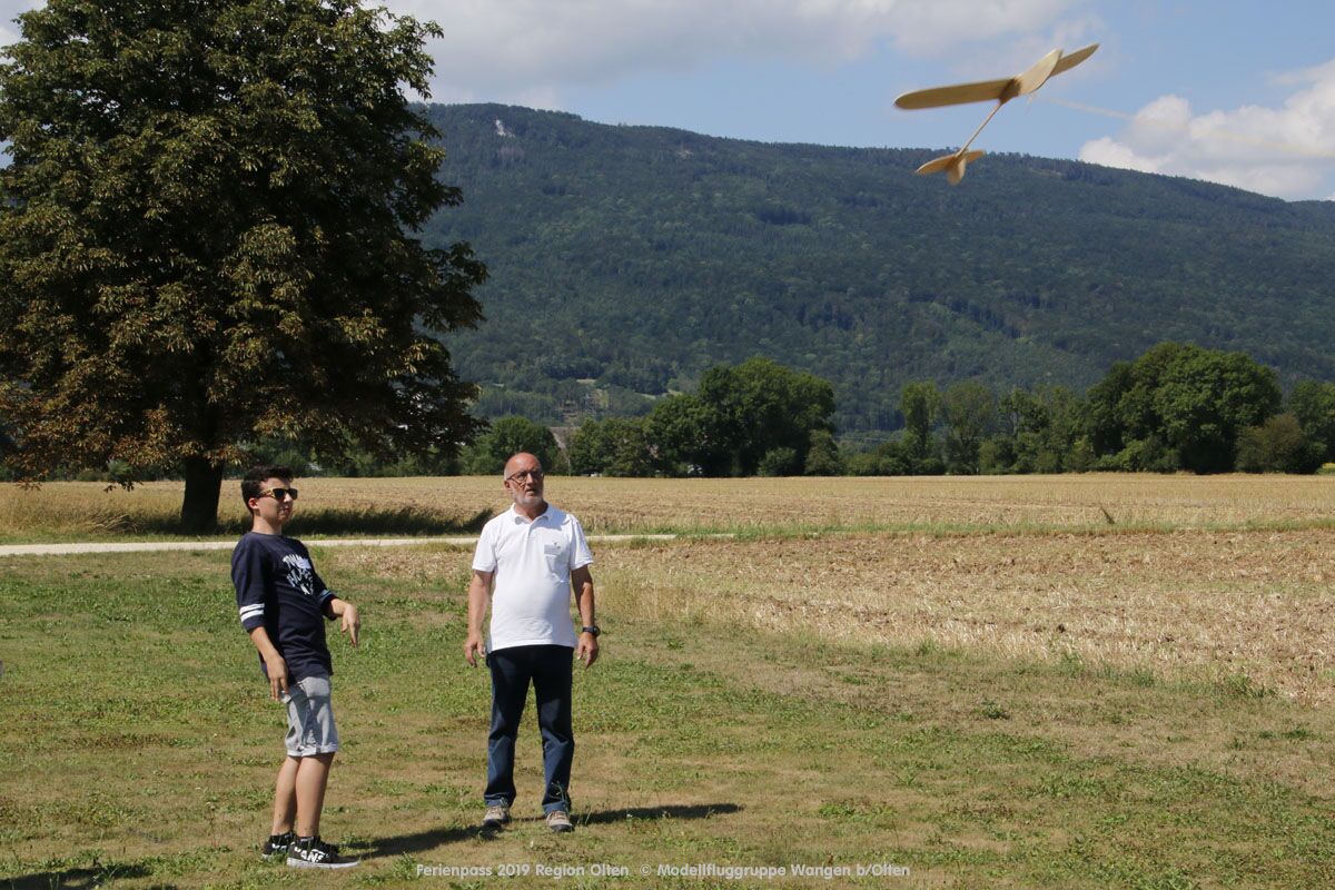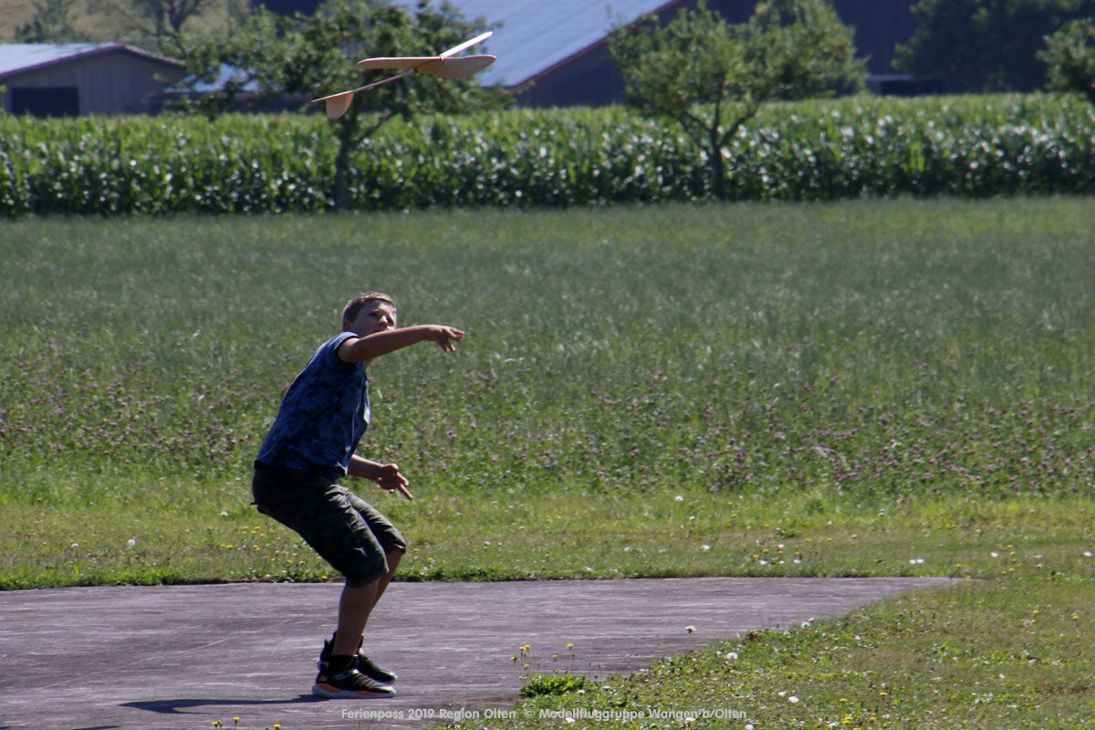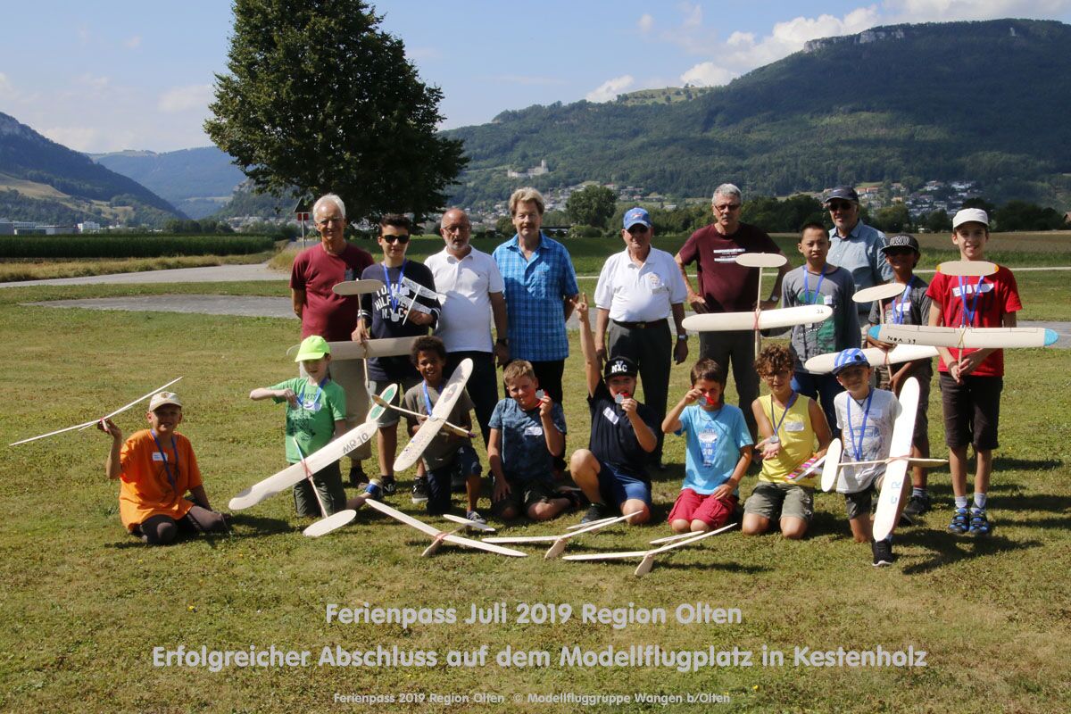 Anlässlich des Ferienpasses der Region Olten Ende Juli 2019, konnten wir 12 Schüler beim Kurs "Ein Flugzeug bauen und fliegen" im Hinterbüel Schulhaus in Wangen bei Olten begrüssen!