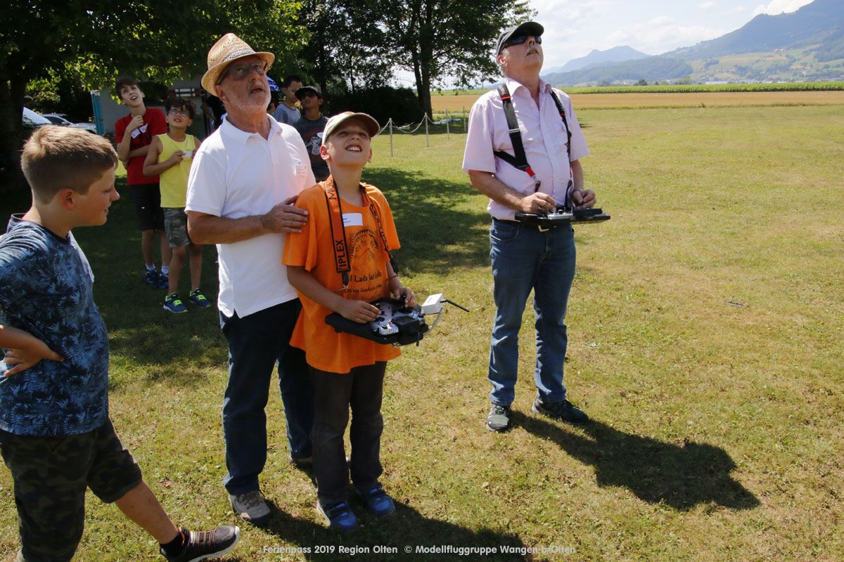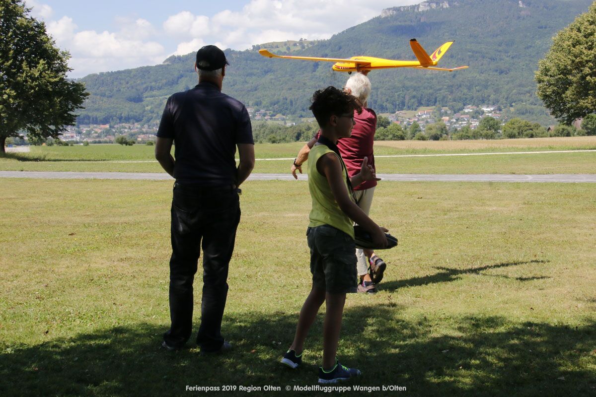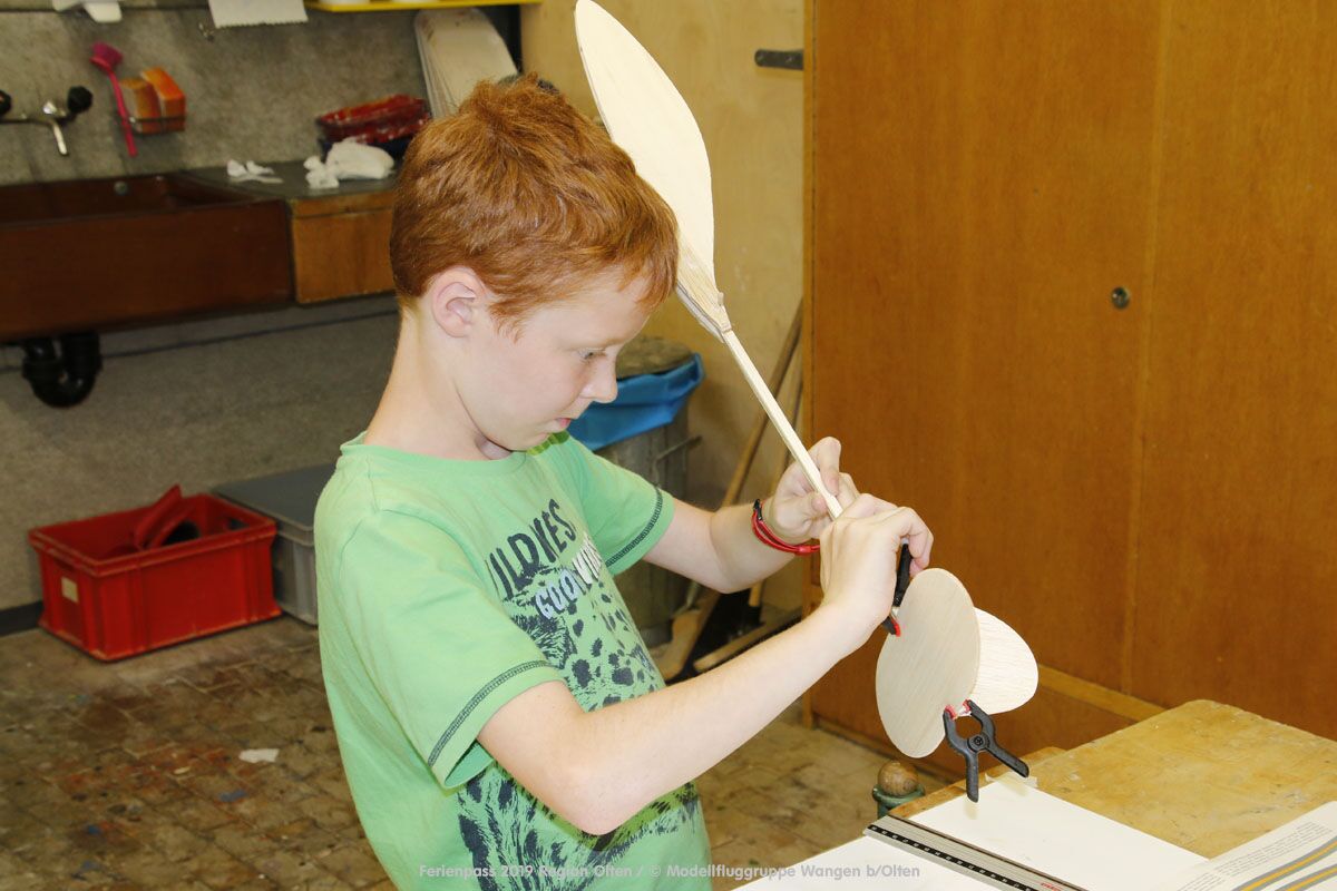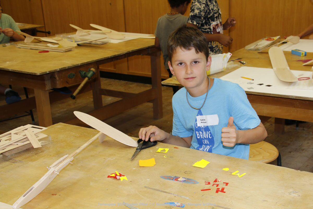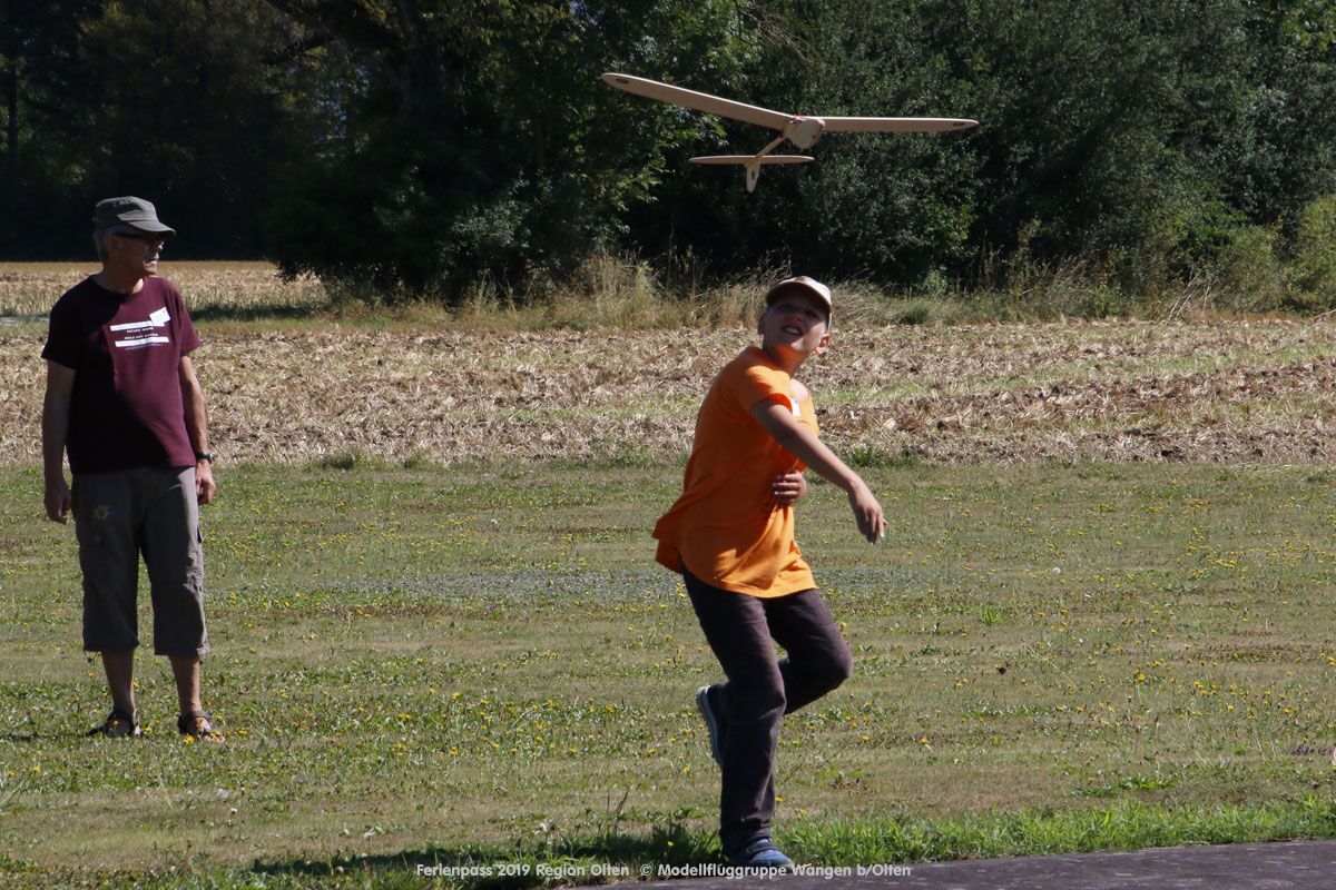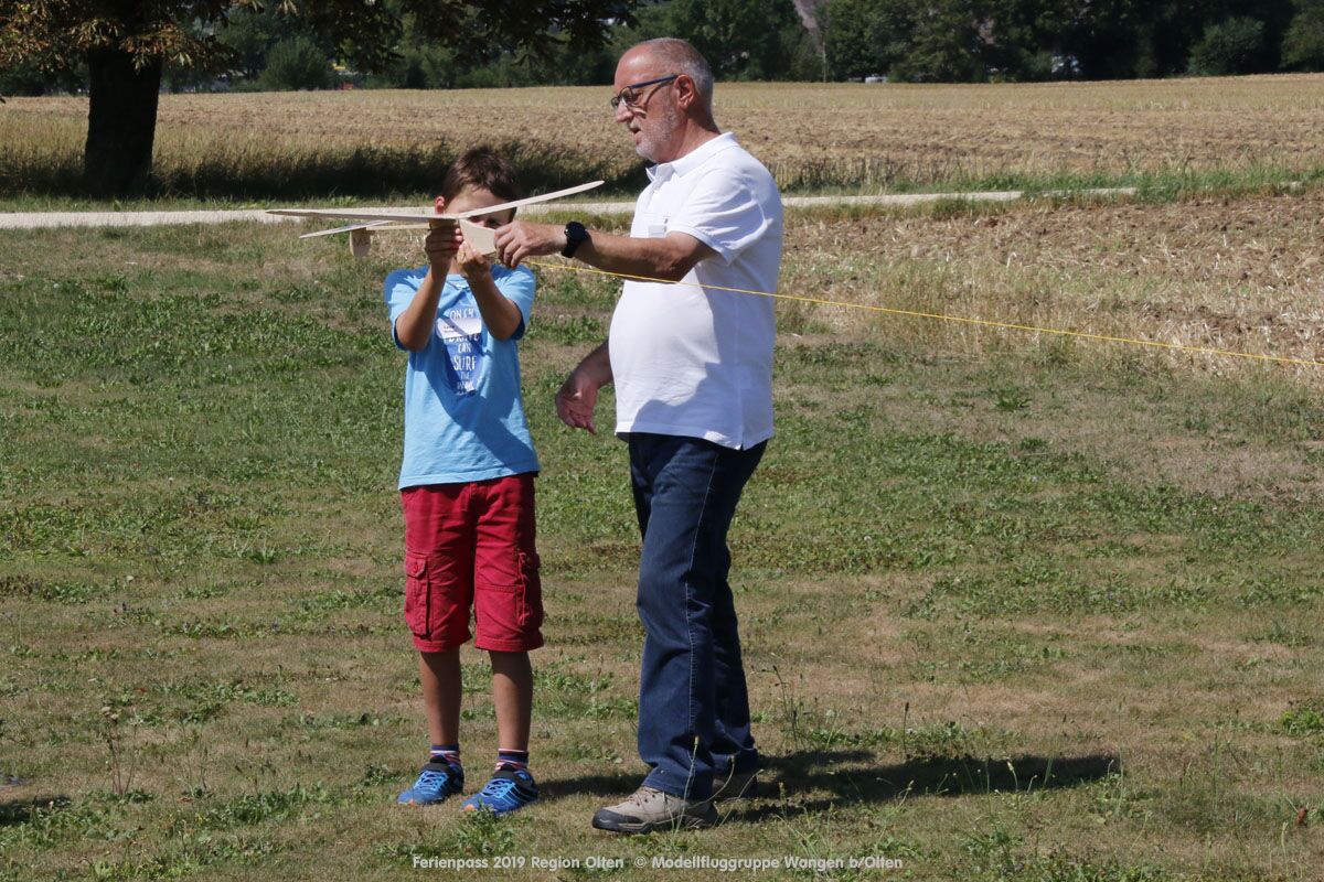 Anlässlich des Ferienpasses der Region Olten Ende Juli 2019, konnten wir 12 Schüler beim Kurs "Ein Flugzeug bauen und fliegen" im Hinterbüel Schulhaus in Wangen bei Olten begrüssen!