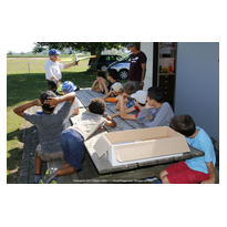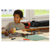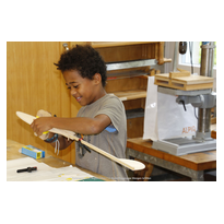 Am Montag, den 29. Juli bauten wir (6 Mitglieder der MG Wangen) mit den Schülern einen Balsaholz-Segelflieger, den "Aeronaut Falke".
